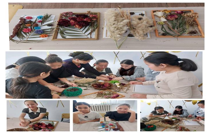 "Адал азамат"біртұтас тәрбие бағдарлама аясында күзгі каникул уақытын тиімді өткізу мақсатында "ЭкоӨрнек"үйірмесі аясында «Кептірілген гүлдерден панно» тақырыбында шебер класс ұйымдастырылды.